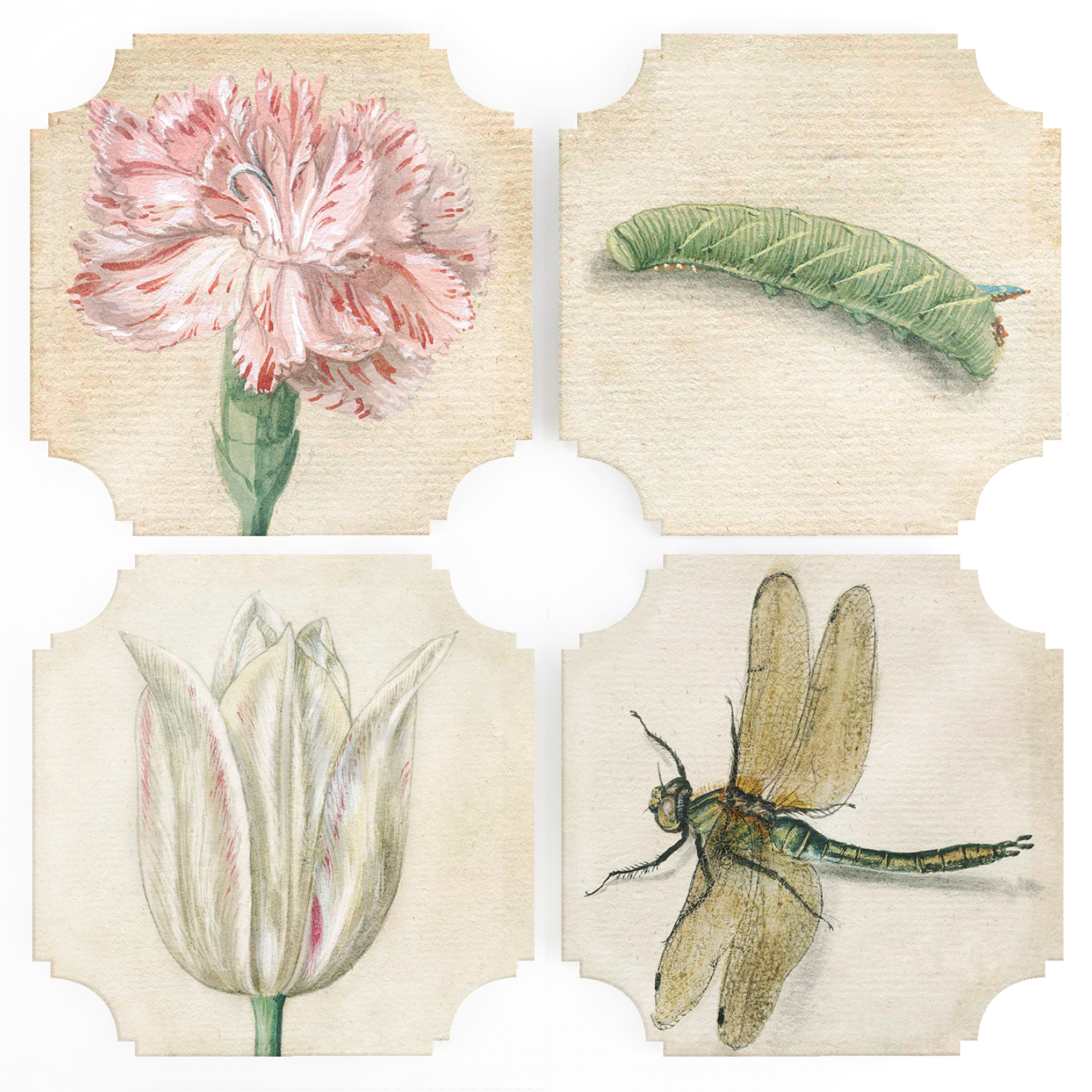 Enhance your table setting with this set of 4 coasters featuring stunning insects and flowers. Keep your surfaces safe from spills and add a touch of natural beauty to any room. Made with high-quality materials for long-lasting durability. Perfect for any nature lover or home decor enthusiast. 4" x 4"
