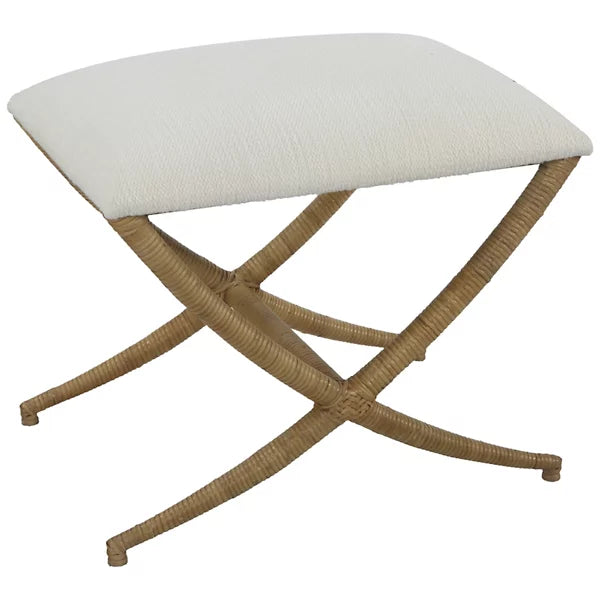 The perfect casual accent, the Expedition Small Bench displays coastal influence with a natural rattan wrapped iron base. The cushioned seat is upholstered in a crisp white textured polyester fabric.
