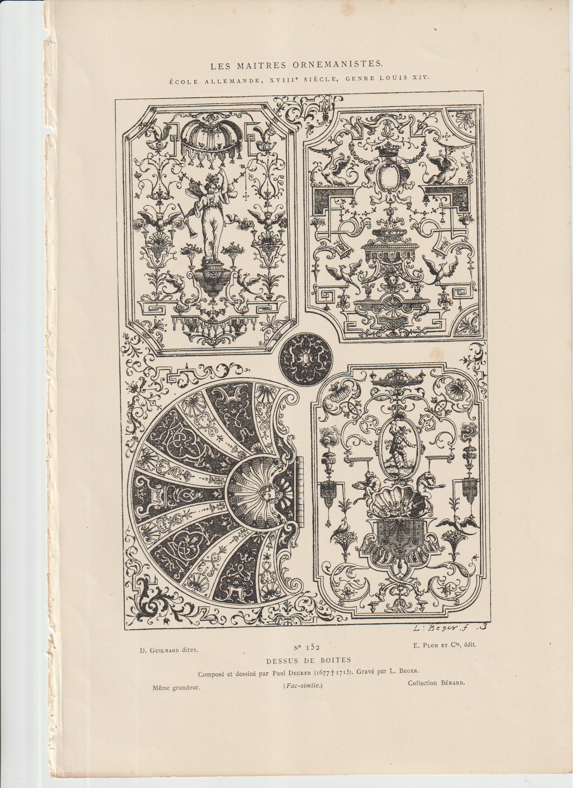 “Louis XIV Ornamental Box‑Top Designs – Antique Paul Decker Engraving (No. 152), Baroque German Decorative Art Print”