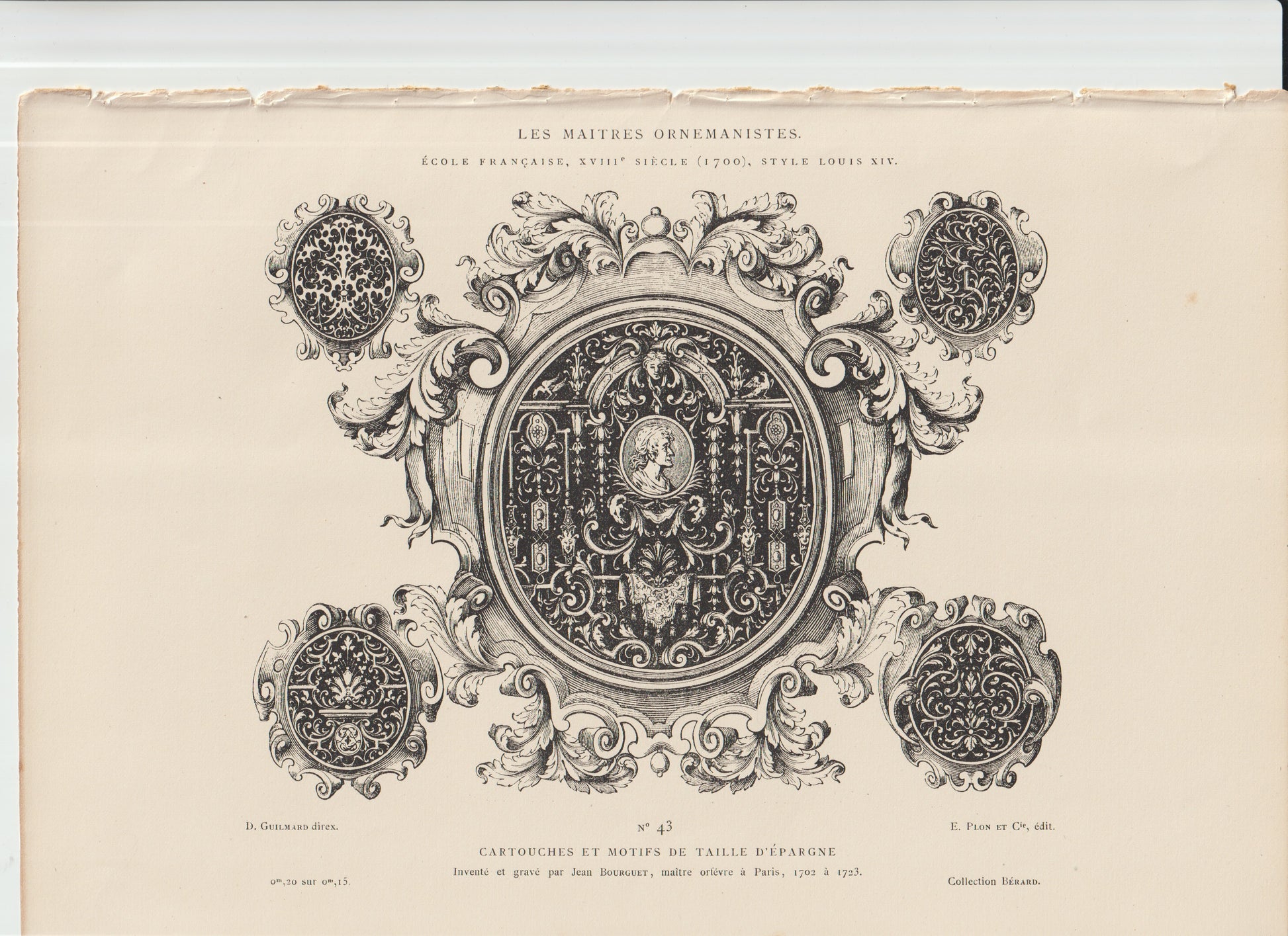 “Louis XV Cartouches • Bourguet Engraving • Antique French Ornament Print • Rococo Taille d’Épargne • Plate 43”
