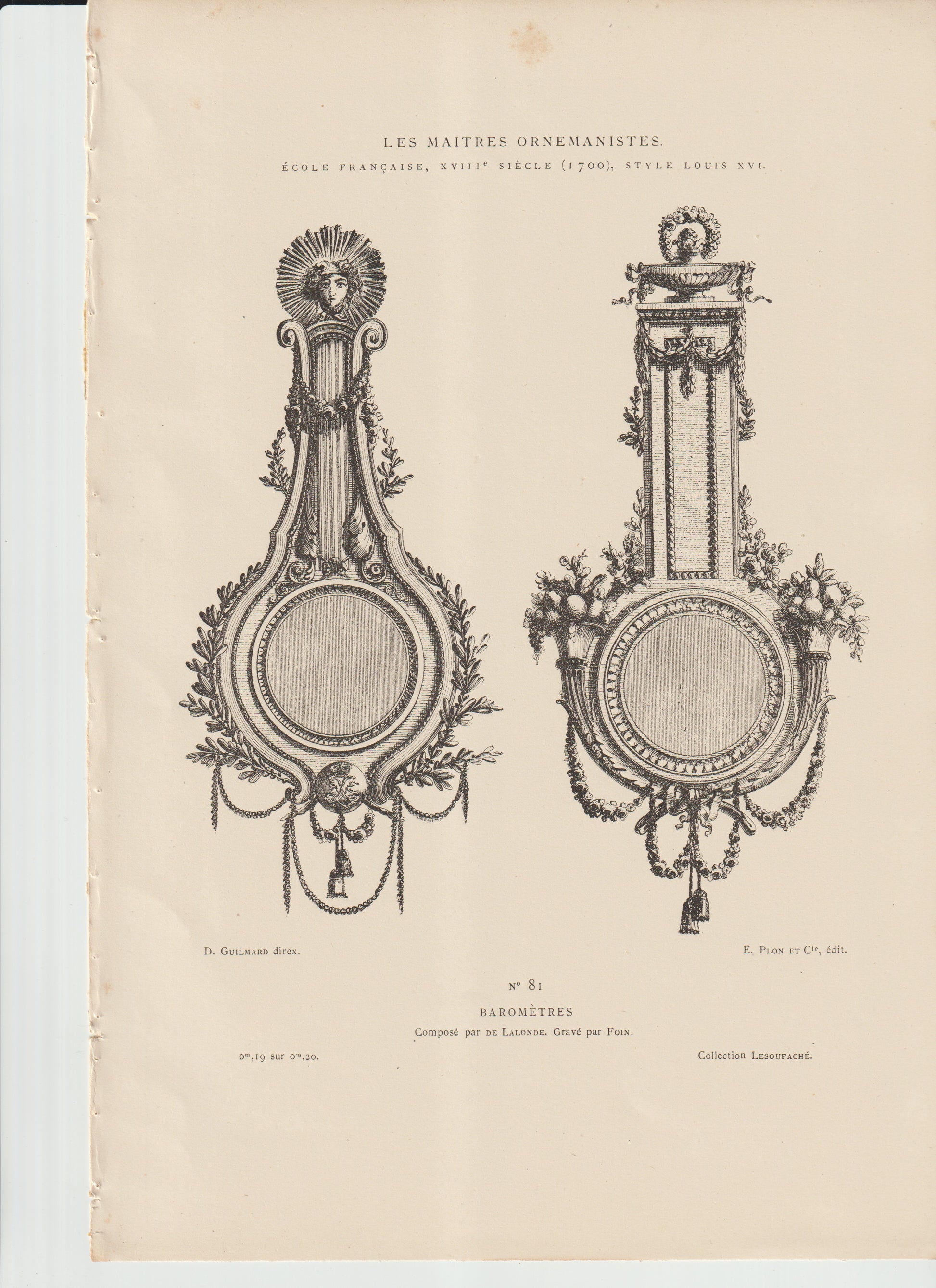 “Louis XVI Barometer Designs — Antique 19th‑C Engraving (Plate 81) — de Lalonde & Foin — French Neoclassical Wall Art”