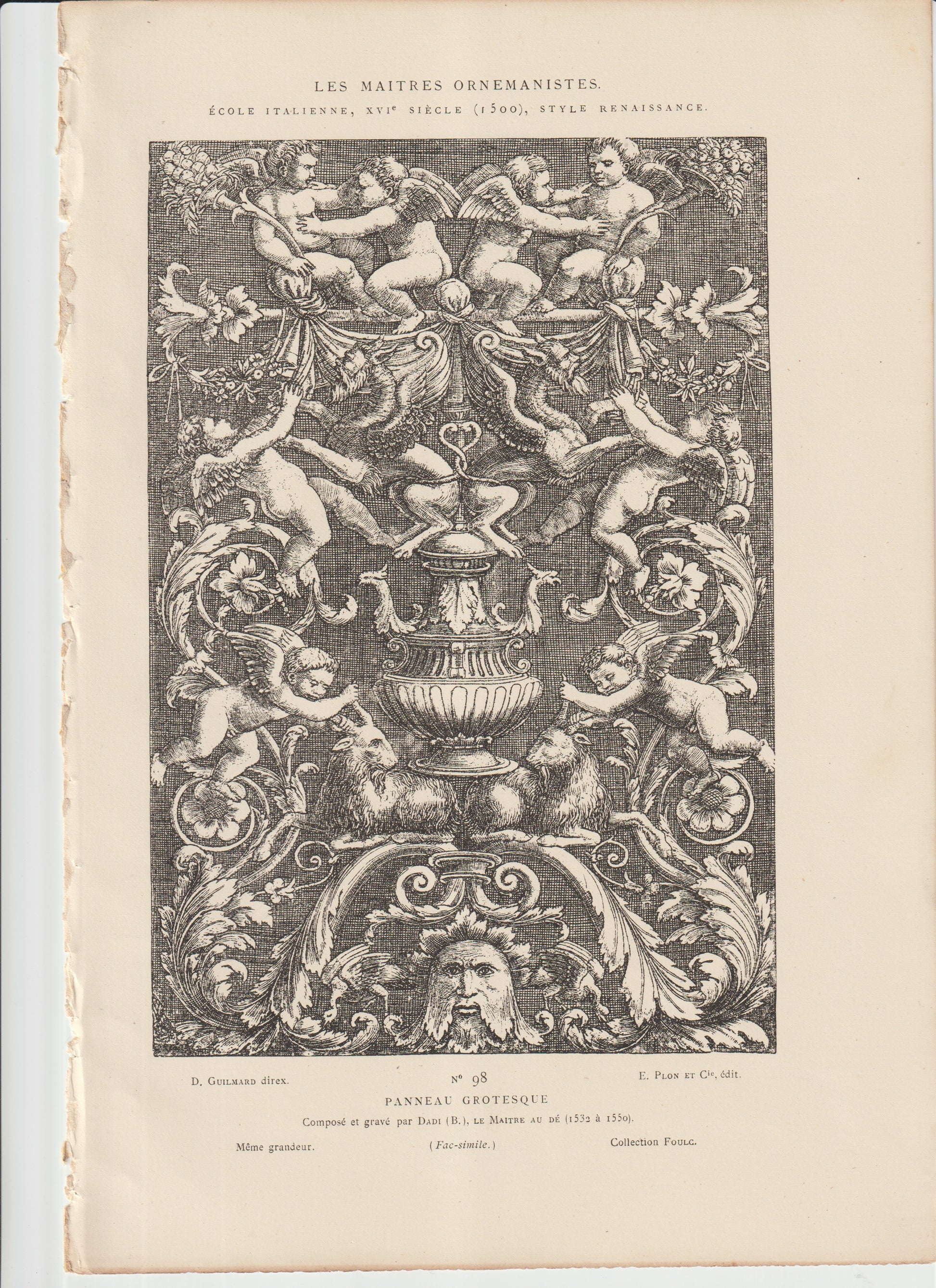 “Renaissance Grotesque Panel Engraving — Maître au Dé, Italian Ornament Print (1860s Plon et Cie)”