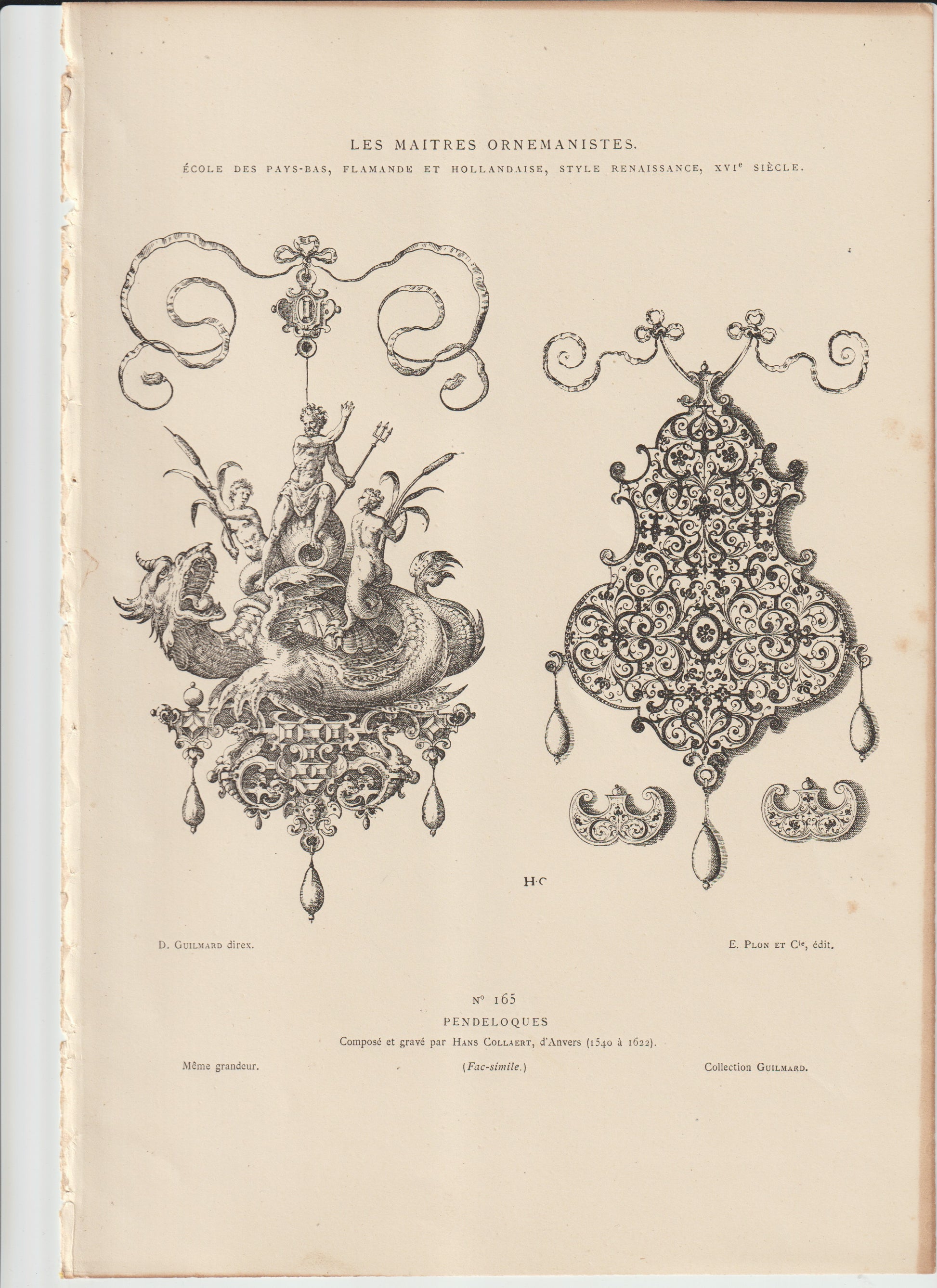 “Renaissance Pendant Ornaments – Mythical Sea Creature & Filigree Designs by Hans Collart, 16th‑Century Flemish Engraving (Facsimile)”